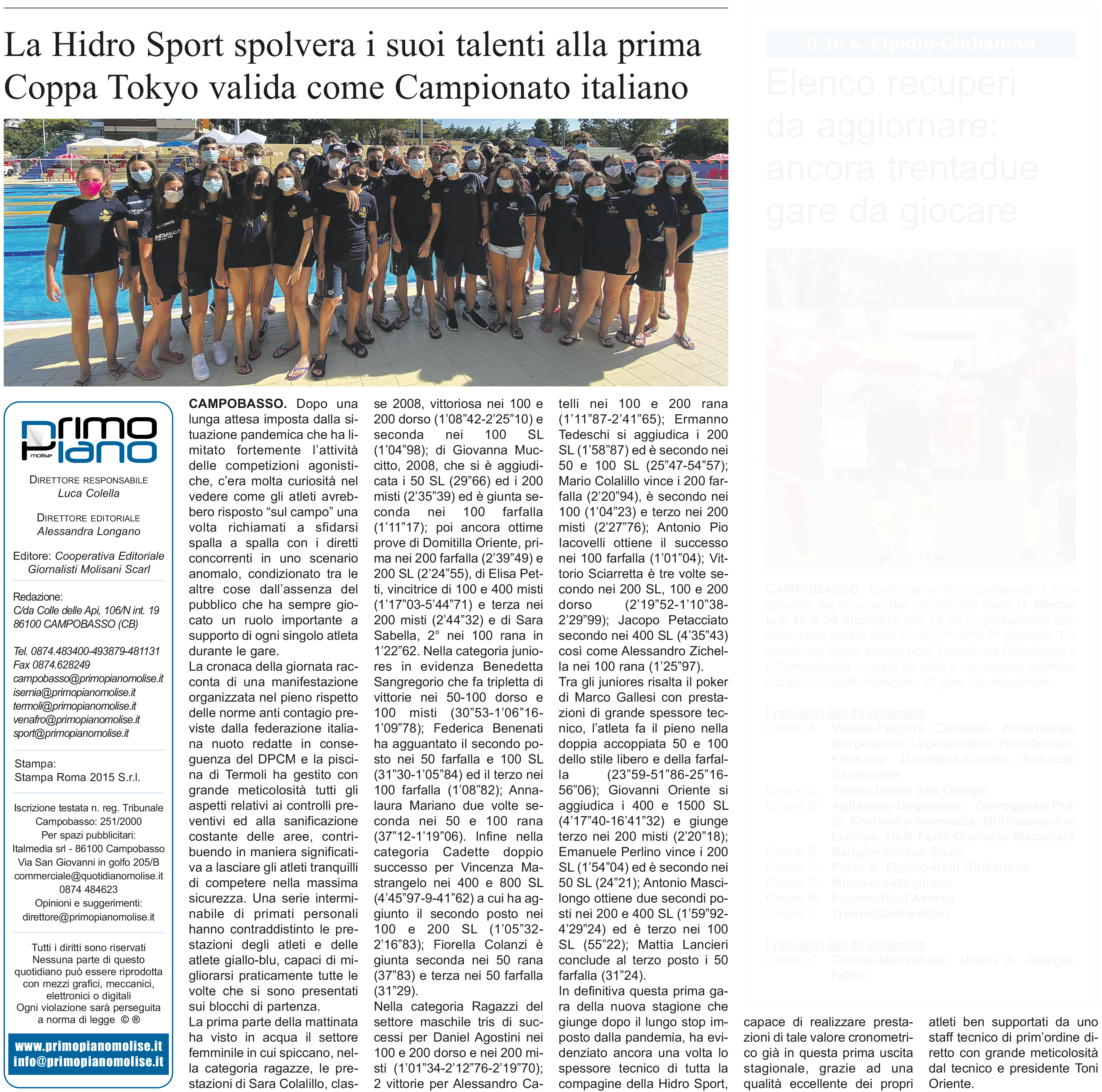 In definitiva questa prima gara della nuova stagione che giunge dopo il lungo stop imposto dalla pandemia, ha evidenziato ancora una volta lo spessore tecnico di tutta la compagine della Hidro Sport, capace di realizzare presta- zioni di tale valore cronometrico già in questa prima uscita stagionale, grazie ad una qualità eccellente dei propri atleti ben supportati da uno staff tecnico di prim’ordine diretto con grande meticolosità dal tecnico e presidente Toni Oriente.